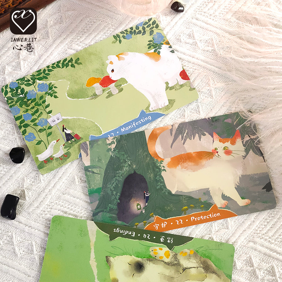 猫咪是毛茸茸的可爱生物,人类的好伴侣,更是我们的灵性向导。《猫之灵神谕卡》中,跟随巨大化的可爱猫咪们,开启追寻珍贵精神启示的有趣冒险吧! 作者:杰米·埃尔福德 画家:阿布酱 卡片规格:24 张卡,14x8cm 手册语言:中文,英文